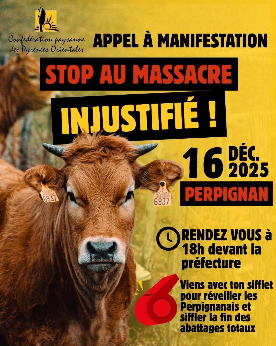 Manifestation contre l’abattage systématique des bovins Tweeter Partager Partager Imprimer cet article Télécharger cet article 15 décembre 2025