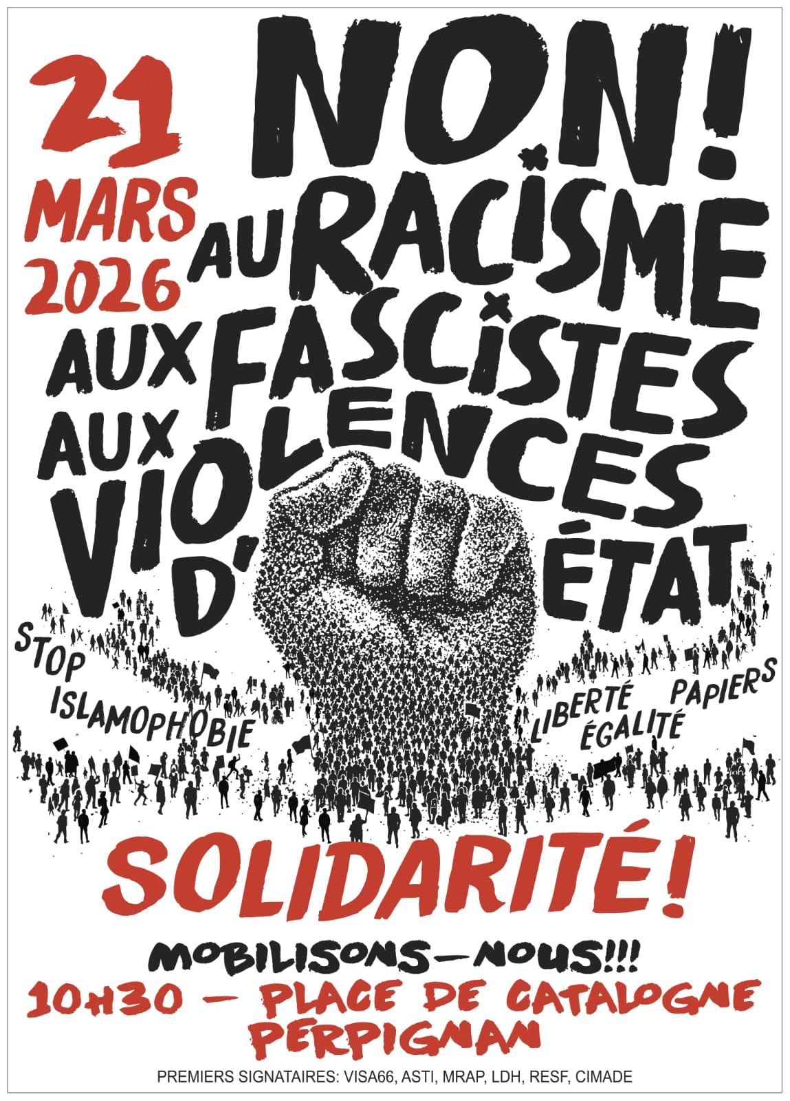 MARCHE DES SOLIDARITÉS POUR LA JOURNÉE INTERNATIONALE POUR L’ÉLIMINATION DE LA DISCRIMINATION RACIALESAMEDI 21 MARS – 10H30PLACE DE CATALOGNE – PERPIGNANProgramme de la marche:– 10h30 – Manifestation au départ de la place de Catalogne – Perpignan– 12h – Repas place […]